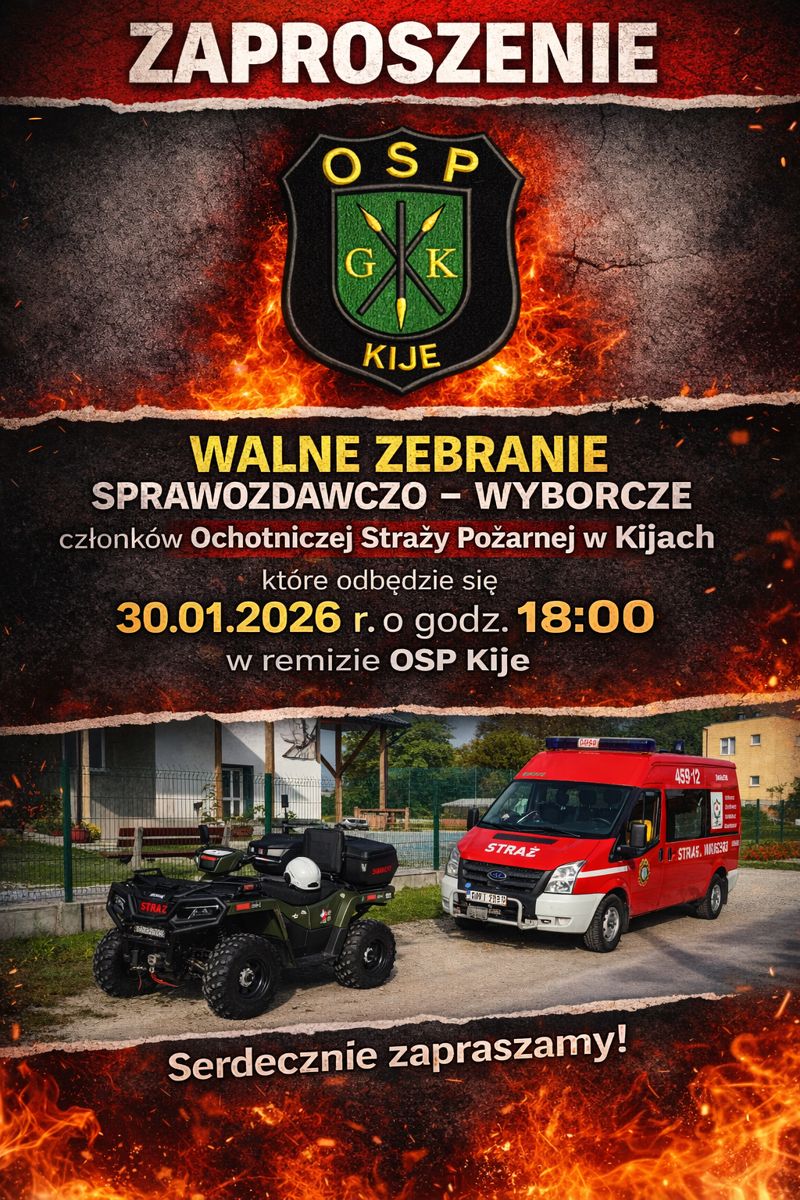 W dniu 30 stycznia 2026 roku w remizie OSP Kije odbyło się Walne Zebranie Sprawozdawczo-Wyborcze członków Ochotniczej Straży Pożarnej w Kijach. Spotkanie miało na celu podsumowanie dotychczasowej działalności jednostki, omówienie…